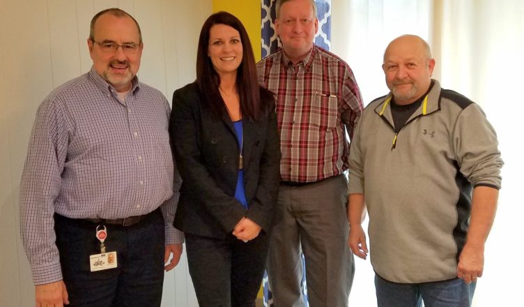 Guernsey County Children Services Director Nicole Caldwell is pictured with the three Guernsey County Commissioners after their proclamation was read, declaring the month of April as Child Abuse and Neglect Awareness Month. The Guernsey County Courthouse is lit in blue for the entire month of April in support of this cause.